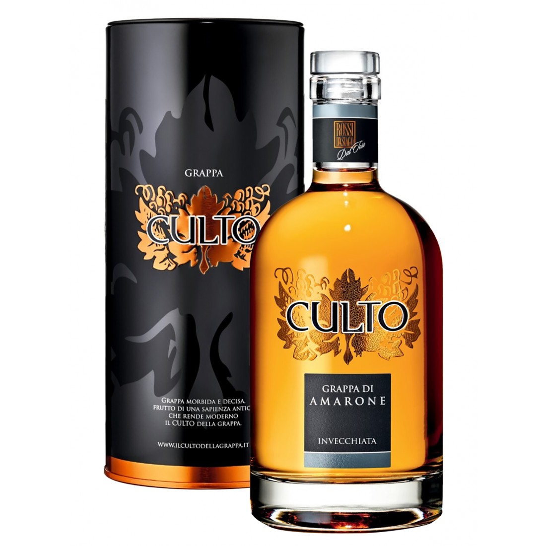 La grappa di Amarone Culto di Rossi D'Asiago è prodotta dalle vinacce di uve passite utilizzate per la produzione del pregiato vino Amarone di Valpolicella e invecchiata in barrique di legno pregiato per oltre 12 mesi.